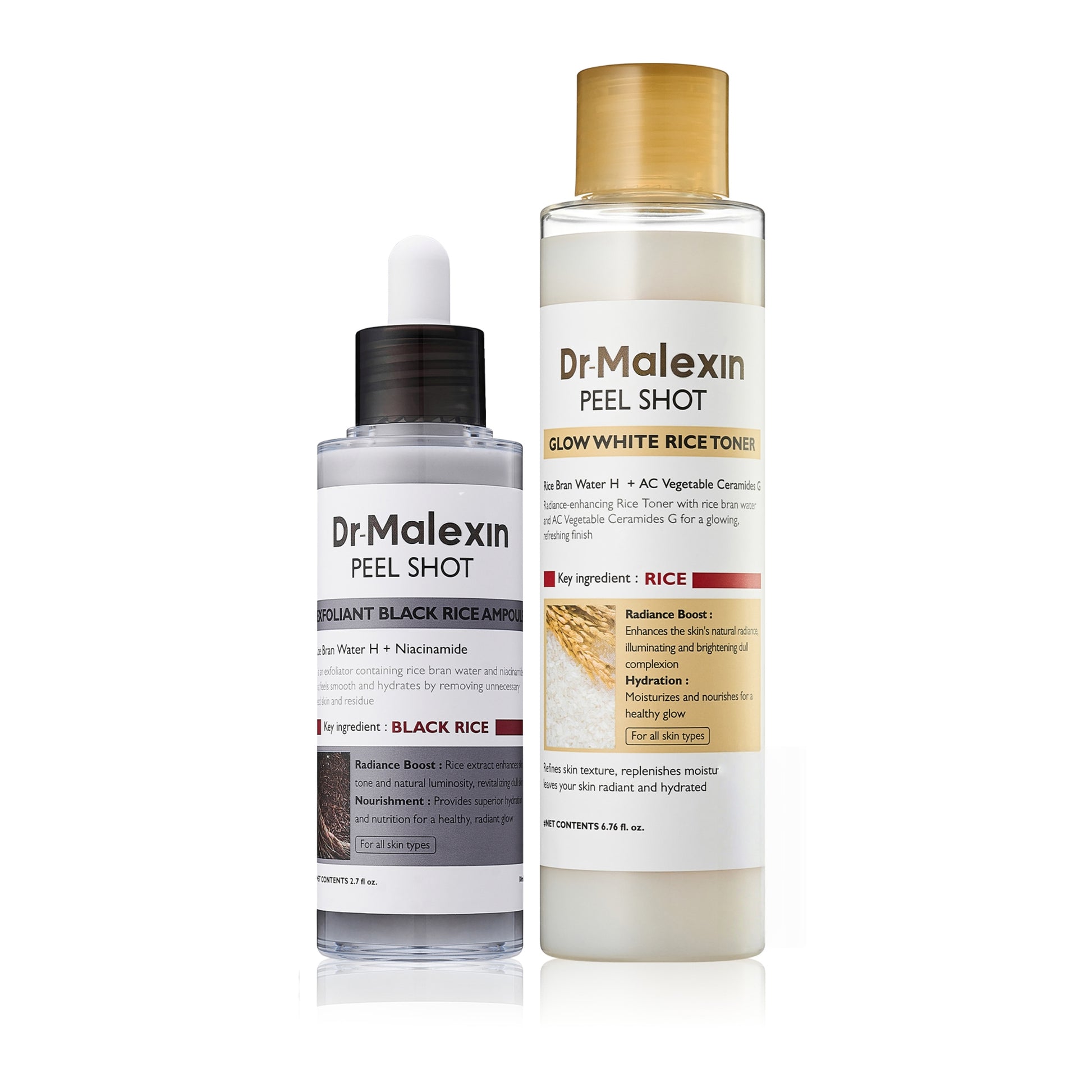 Dr-MalexIn Peel Shot Glow Rice Ampoule Set (Black+Toner)